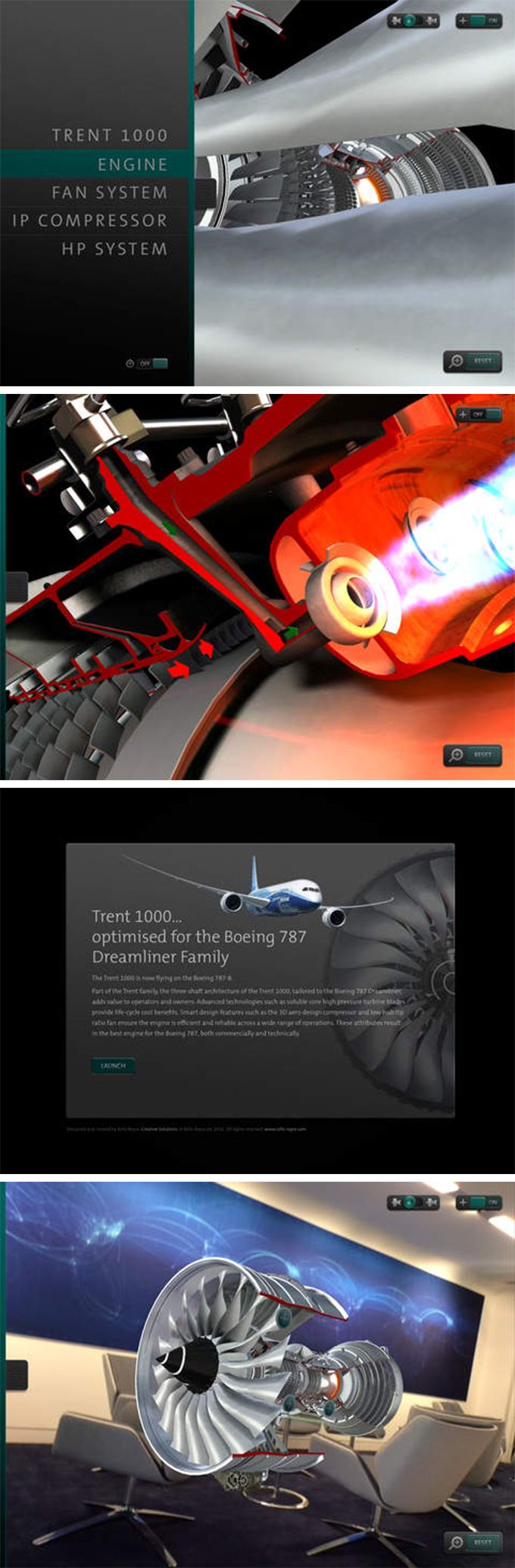 Rolls-Royce Trent 1000 — предпочтительный вариант для самолета Boeing 787 Dreamliner. Trent 1000 приложение дополненной реальности для iPad демонстрирует этот двигатель и его атрибуты в четырех сценах дополненной реальности, все в захватывающих деталях и демонстрация использования высокой технологии и инноваций. Используйте приложение не в реальном режиме или испытайте полную дополненную реальность, загрузив и распечатав маркер с этой веб-страницы;